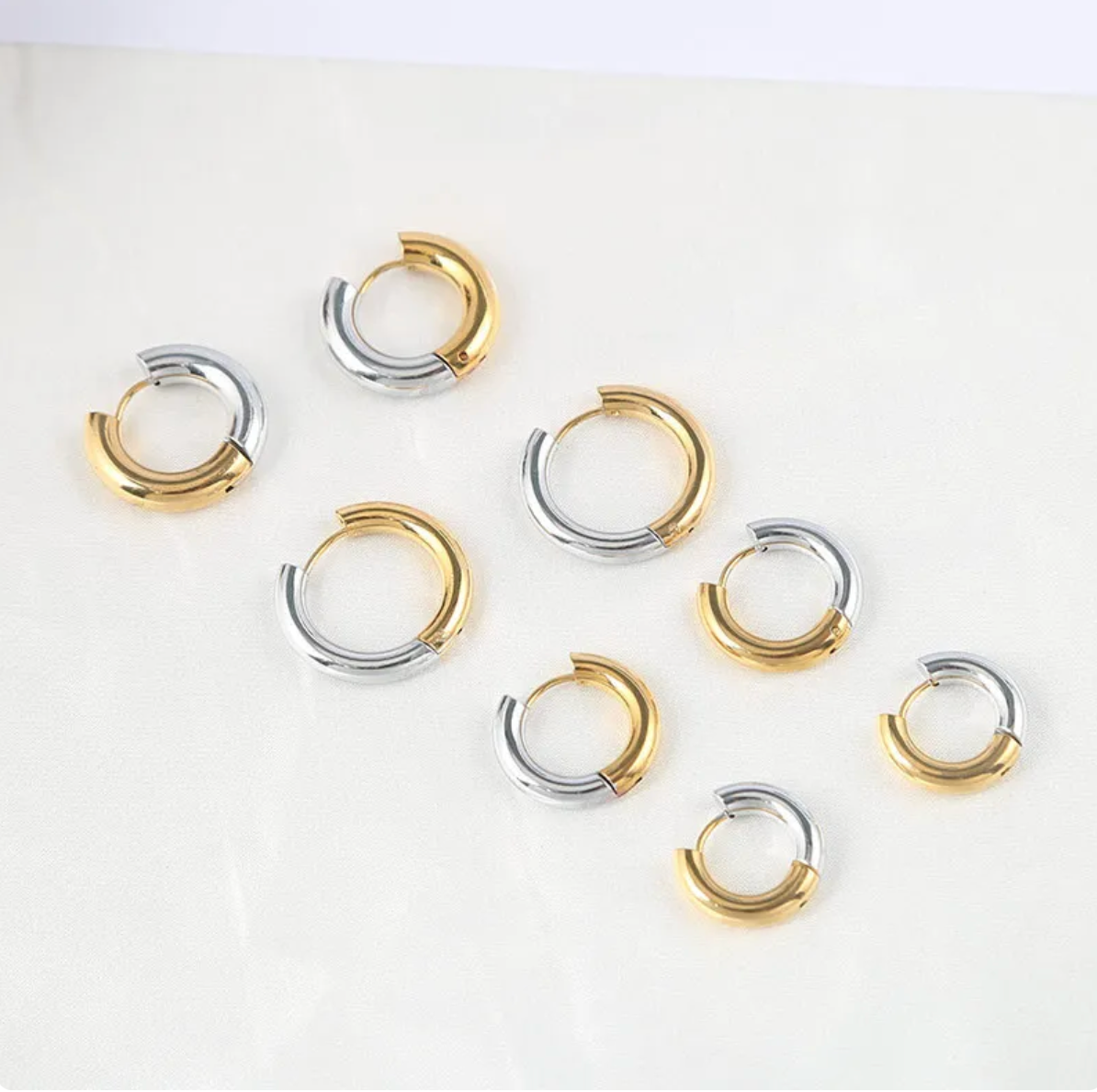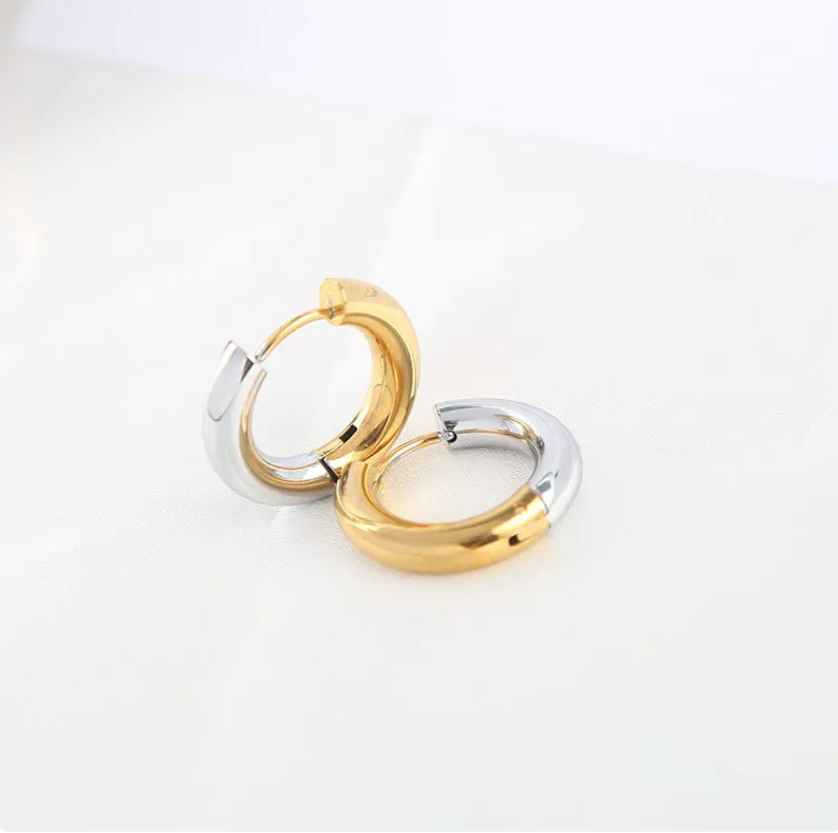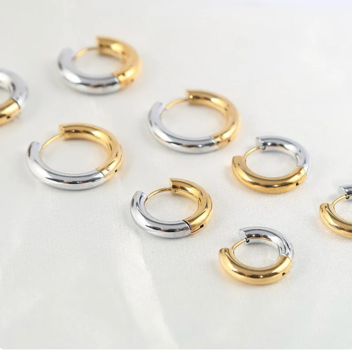 Hoops de acero inoxidable con chapa de oro BICOLOR. Perfectos para usar con dorado, con plateado y hacer un mix and match.