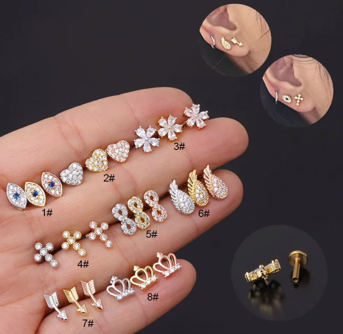 Piercing Invertido CRUZ, OJO TURCO, CORONA, FLOR, FLECHA