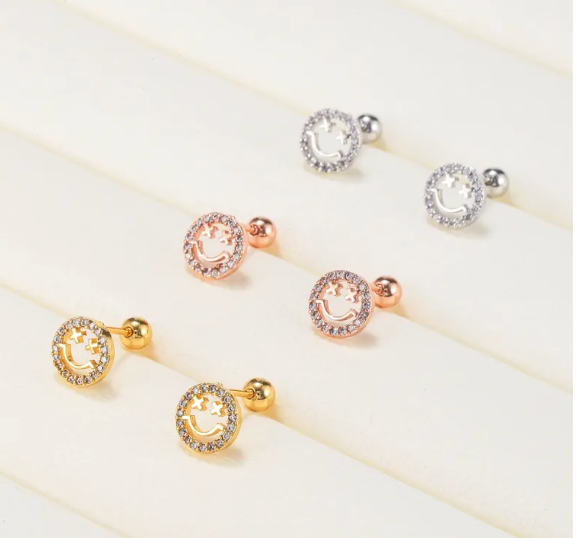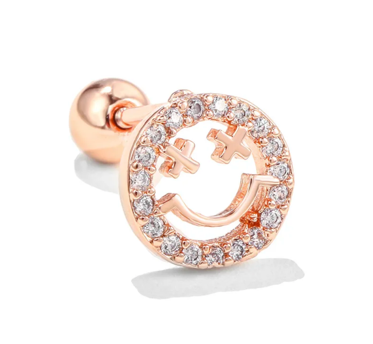 Piercing de acero inoxidable con baño de oro e incrustaciones de circonias. Ideal para nuevos piercings pues tiene tornillo atrás por lo que no es necesario quitarlo por la noche y no lastima. Perfecto para orejas sensibles. Se vende por pieza individual.