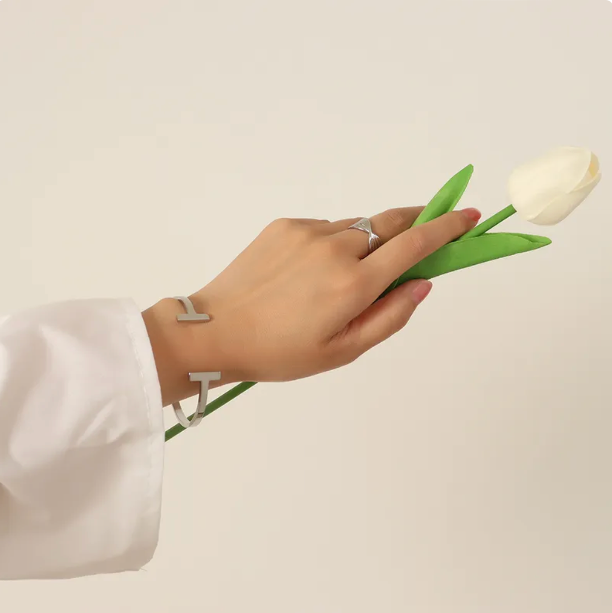 Pulsera tipo Tiffany hecha de acero inoxidable y chapa de oro. Disponible en Rose Gole y Plateada